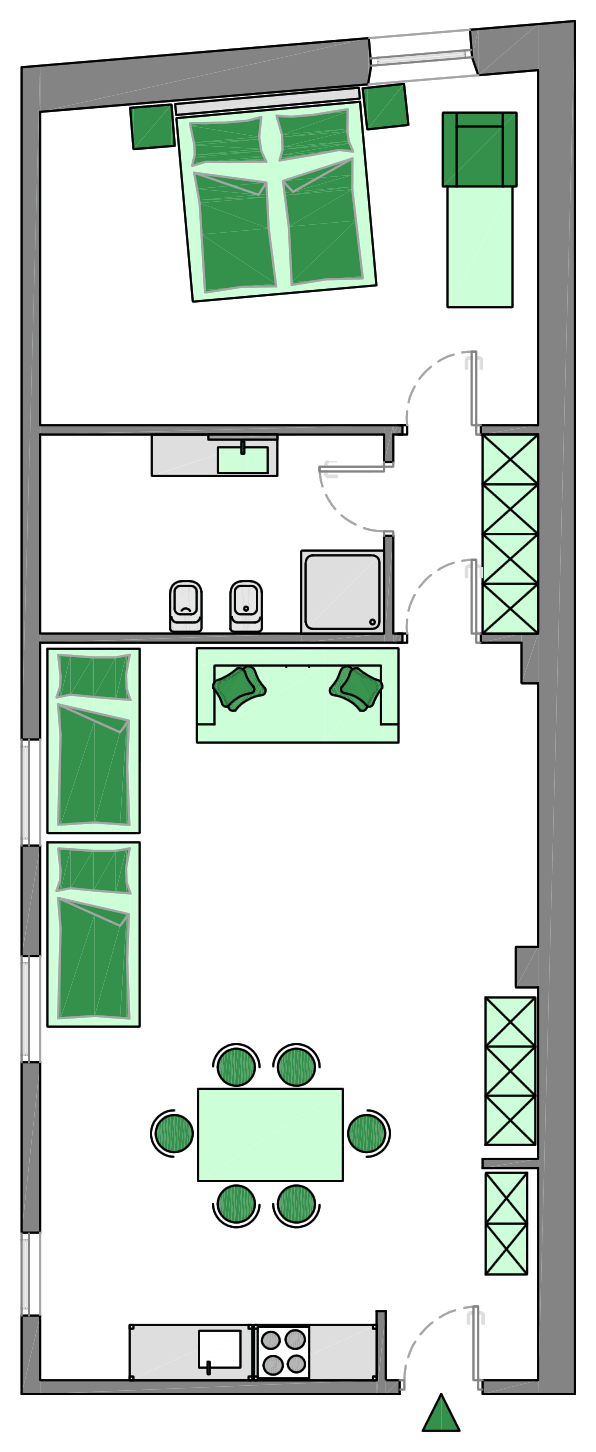 Auf großzügigen 70 Quadratmetern finden reiselustige Freundesgruppen und Familien ganz viel Raum zum Entspannen und Urlauben im angenehmen, natürlichen Ambiente unseres Grünen Apartments.